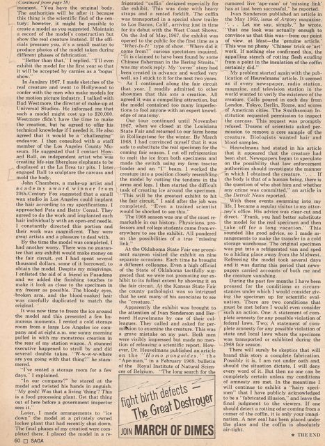 There were many competent researchers that examined the original Ice Man body before it was switched. The results of those examinations were that the body smelled of rotting flesh and the body had characteristics of a human body. When you read the story below, note what Canadian Customs felt about the body. They felt it was a real corpse and refused to release it until a U.S. Senator became involved. It appears to NABS that Frank Hansen obtained the body, by some means, and decided to make some easy money by displaying it. Frank had no idea that the U.S. government, the Smithsonian and other agencies with credibility would get involved. He had no choice but to change the body being displayed and remove any concerns by governmental officials. NABS has not seen the exact magazine article replicated anywhere. Enjoy Frank’s rendition of his events and the photos.