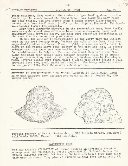 Basin Gulch Expedition Pg 3 Sketches of Bigfoot